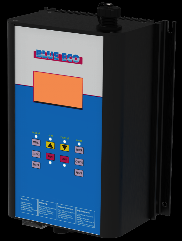 Ebenso ausgestattet mit "Cruise Controll" und Trockenlaufschutz., auch kann ein zweites Bedienungspaneel über einen zusätzlichen Eingang angeschlossen werden. Am Controller kann man die Betriebsstunden, den Stromverbrauch, die Drehzahl und den Durchfluss ablesen. Weiterhin bietet das große Display noch die Anzeige diverser Fehlermeldungen.