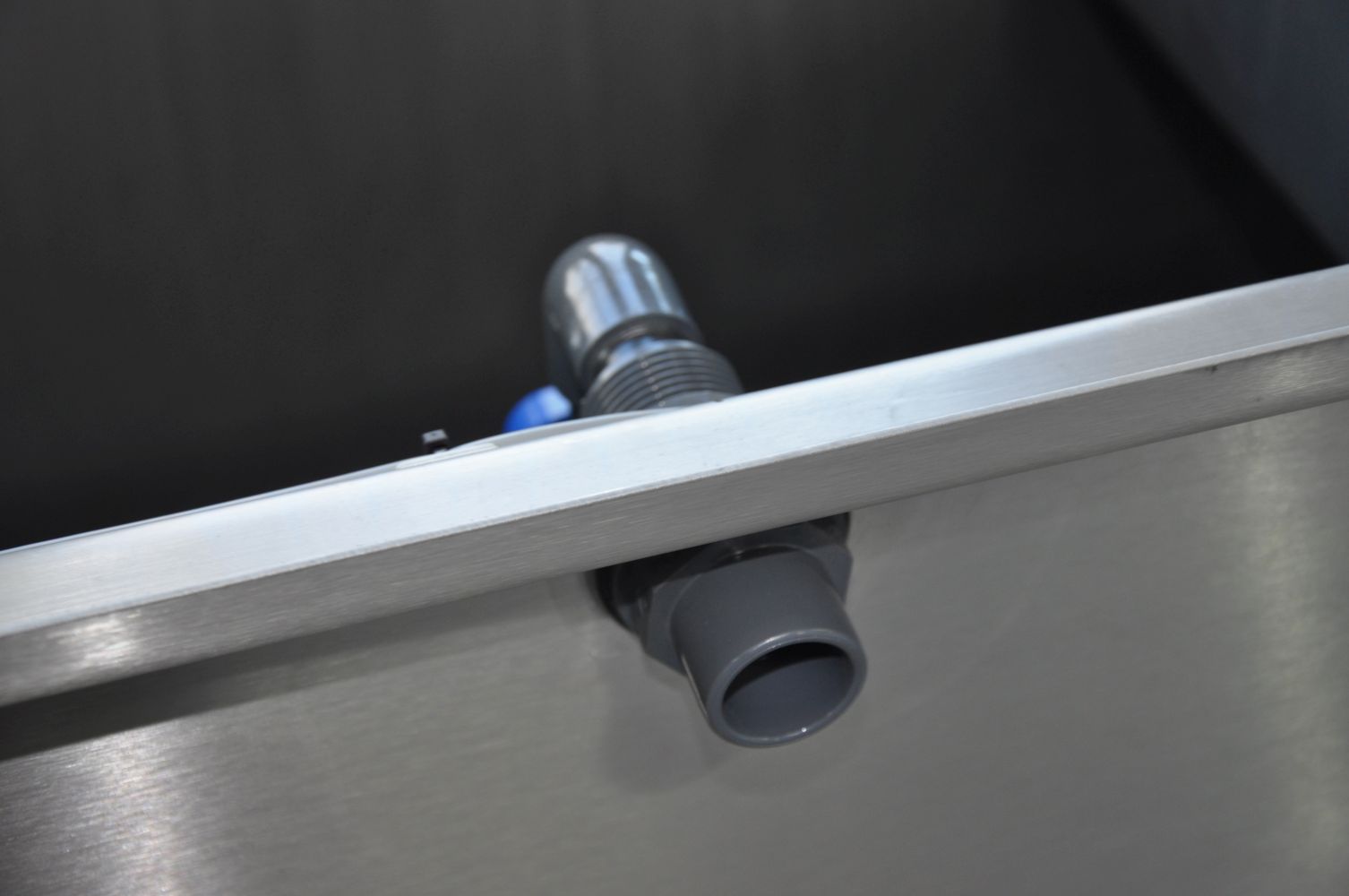Bei der Schwerkraftvariante ist der Schwimmerschalter über eine höhenverstellbare Halterung ebenfalls in der letzten Kammer untergebracht. Die höhenverstellbare Halterung ermöglicht eine schnelle und unkomplizierte Einstellung des Schwimmerschalters bei Wasserstandverlusten, oder bei Neuinstallation. Bei der gepumpten Variante ist der Schwimmerschalter am Eingang des Filters, oberhalb des Filterbands untergebracht.