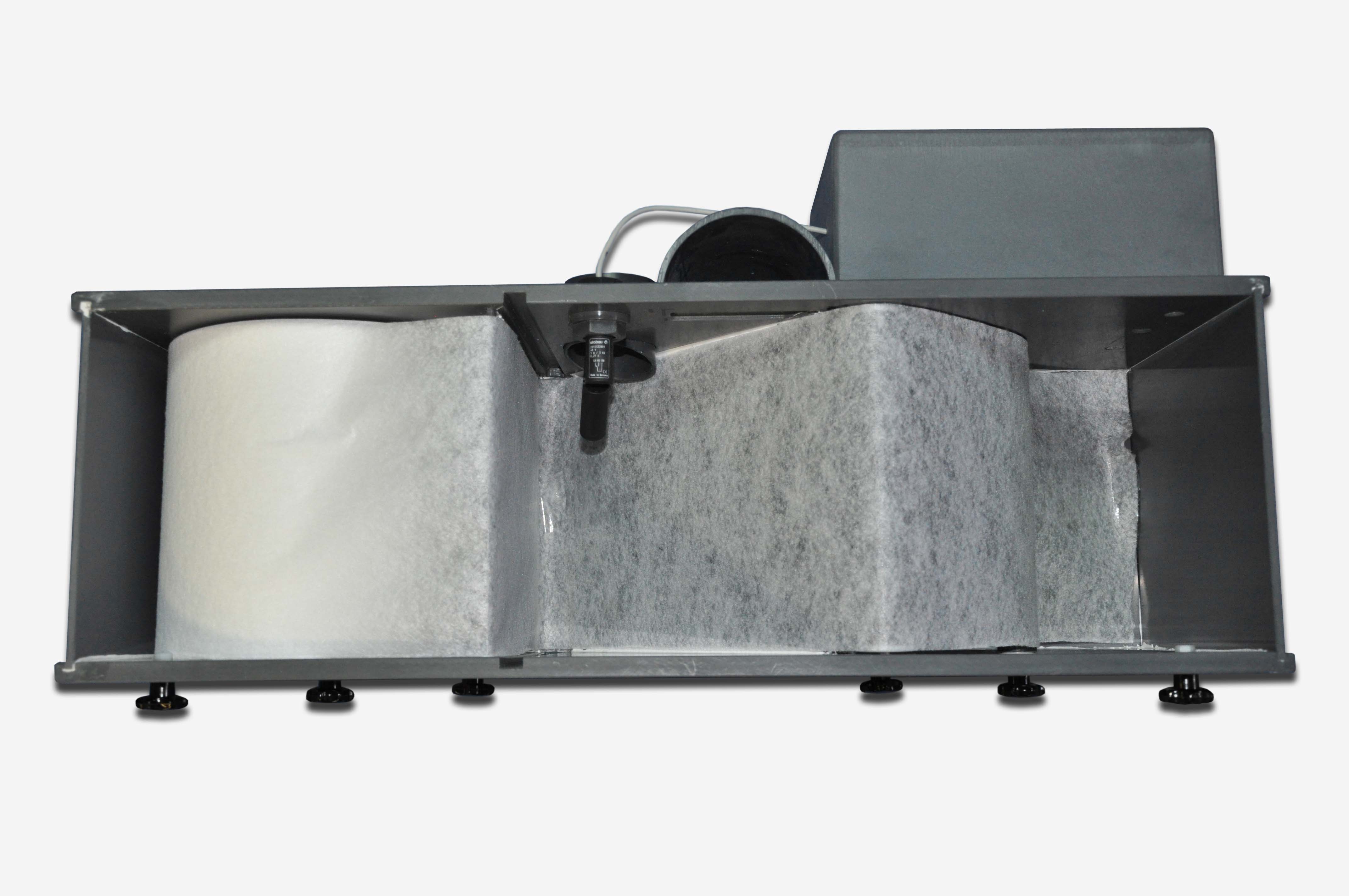 Ausgestattet ist der Aqua-CCV mit einer 20cm breiten Vliesrolle. Dieses Vlies ist von hoher Qualität (40g/m²), ist durch Vernadelung mechanisch gebunden, thermisch behandelt und weißt daher eine extrem feine Filterleistung von bis zu 5µ auf (zur Erklärung: 1000µ ist 1mm!). Da der Filter in unserem Haus komplett aus PVC-Kunststoff gefertigt wird, ist dieser sowohl im Süß-, als auch im Meerwasserbereich einsetzbar. Die Wasserqualität wird durch den Einsatz dieses Filters automatisch um ein Vielfaches verbessert, da das Prinzip des Aqua-CCV 200 darauf ausgelegt ist, den Schmutz vollständig aus dem System zu entfernen. Diese Art der Filterung dürfte fast allen Aquarianern neu sein, da der Schwerpunkt der Filtrierung bisher bei Aussenfilter bzw. Mattenfilter lag. Diese haben zum Nachteil, dass sie den anfallenden Schmutz nur aufhalten, bis dieser in mühsamer Handarbeit von Ihnen entfernt werden muss!