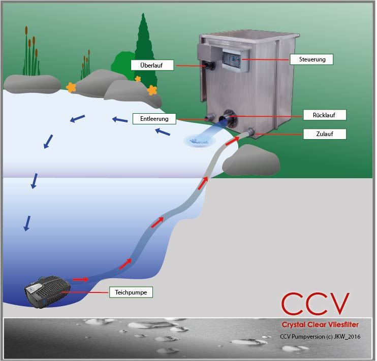 Die gepumpte CCV Reihe ist die einfache und zeitsparende Komplettlösung für alle bereits bestehenden Teiche, bei denen keine versenkte Filterkammer berücksichtigt wurde.