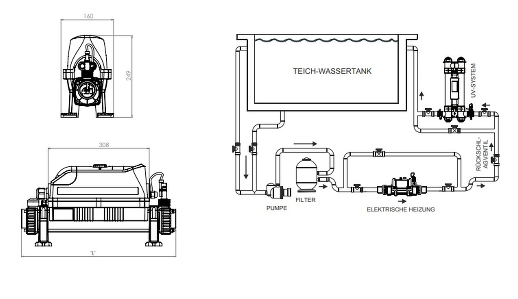 Der erste für Teiche entwickelte Heizer mit digitaler Temperaturreglung und Display. Das Heizelement ist aus Titanium, das Gehäuse aus Edelstahl 316L. Präzise einzustellen von 0-45°C bis 0,5°C. Inklusive internem Strömungsschalter, der den Heizer bei zu niedrigem Durchfluss abschaltet und Thermosicherung zum Schutz des Heizelementes (manueller Reset). - minimale Strömung 1m³/Stunde, Empfehlung 10 m³/h, Max 17m³/h (in Bypass schalten bei einer Strömung mehr als 17m³/h!) - max. Druck 3 bar, Anschluss: 50mm Kupplung, 1½" I.G., inkl. 1¼ - 1½" Schlauchtüllen Jetzt auch inkl. Zeitschaltuhr lieferbar. Vorteil Zeitschaltuhr: Thermostateinstellung bleibt unverändert.