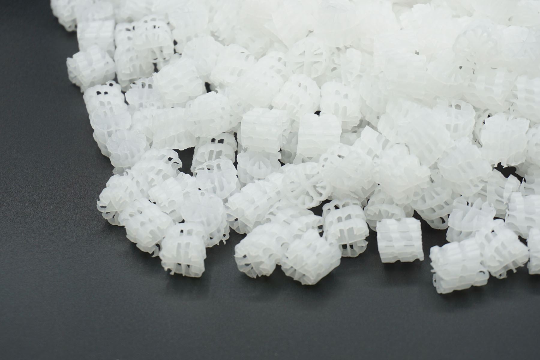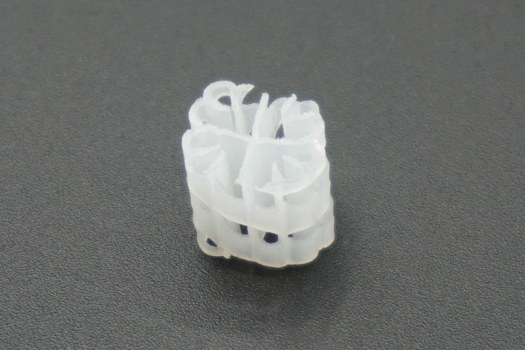 Die Hel-X Füllkörper verbinden hohe Durchströmbarkeit mit großer Oberfläche und dienen sowohl zur mechanischen Verwendung, als auch als biologische Bewuchskörper. Eine umlaufende Wendel (helix) kennzeichnet mit nach innen zeigenden Lamellen die sinnvolle Konstruktion. Sie vermindert Strömungsschatten, erhöht die Effektivität und vergrößert den Anteil der geschützten Oberfläche bei Schwebekörpern. Das verwendete Material ist HDPE und hat die bekannt guten Bewuchseigenschaften.
