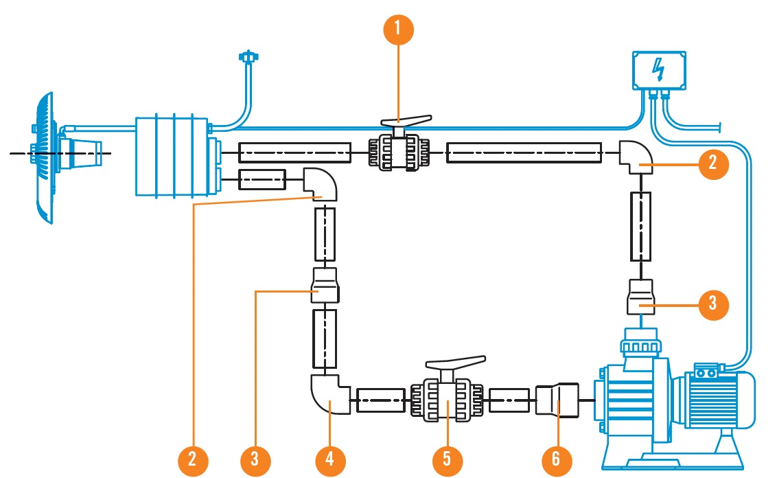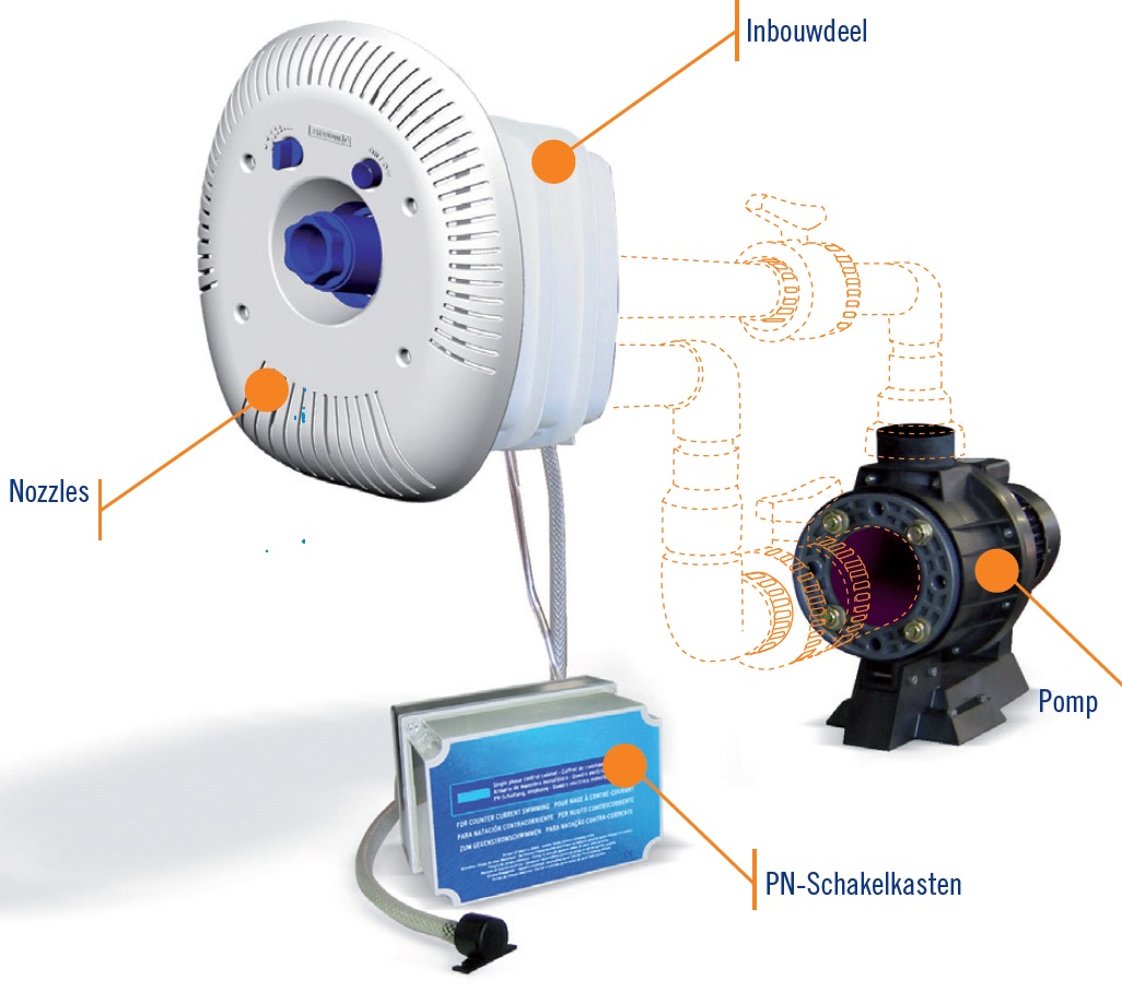 - Im Lieferumfang enthalten sind: Frontplatte mit Düse, Einbauteil für Betonbecken, Pumpe und PN-Schaltkasten