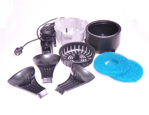 Der SuperFish Pond Skimmer treibt im Teich und saugt unter anderem Schmutz, Blätter, Algen und anderes von Ihrer Teichoberfläche.