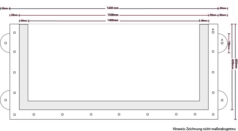 Hinweis zur Ausschachtung: Produktionsbedingt können die Maße der Teichscheiben Abweichungen von +-10mm aufweisen. Wir bitte daher bei der Erstellung der Ausschachtung in der Breite +15mm und in der Höhe +10mm zu berücksichtigen.